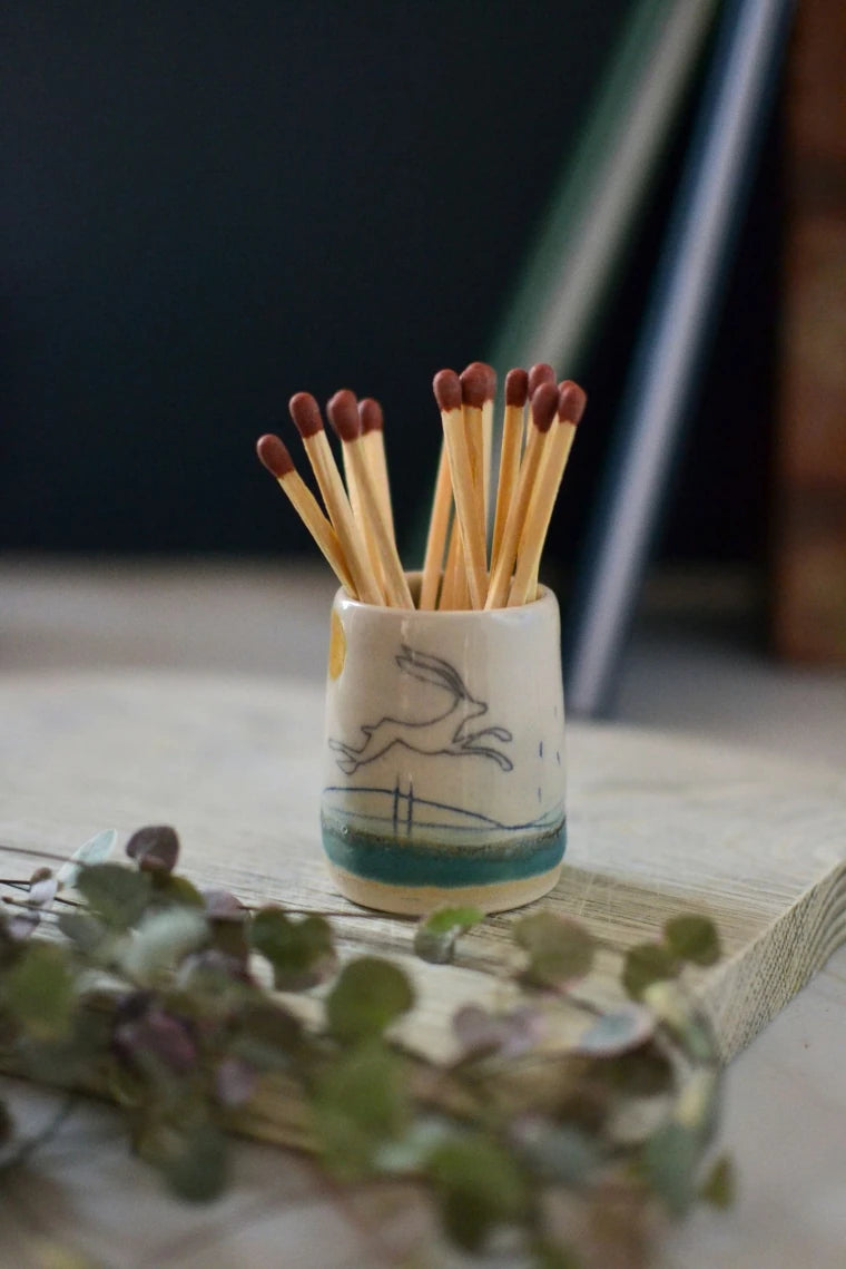 Ceramic handmade striker pot complete with matches - Hare design